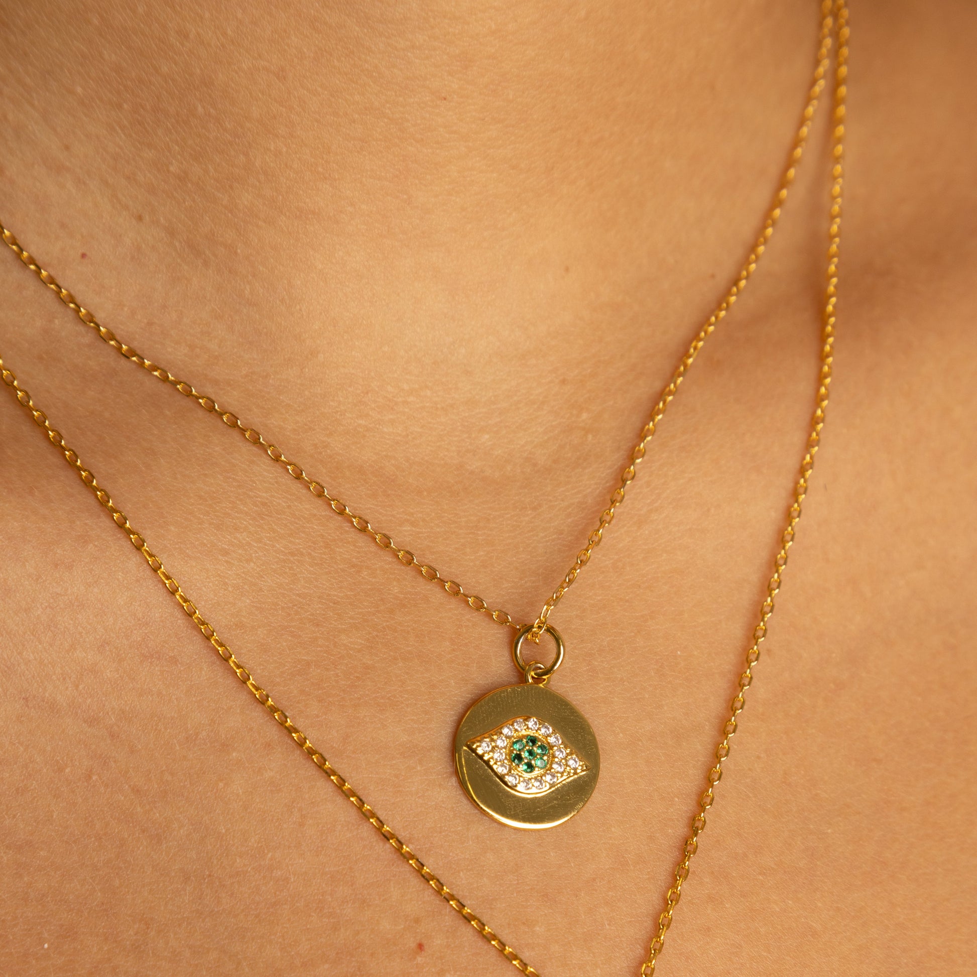 Green Evil Eye Coin Necklace